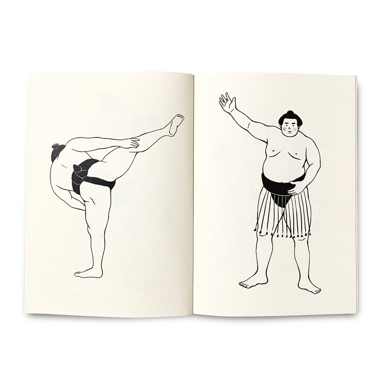 関取、稽古中、まだ髷の結えない姿など、様々なお相撲さんイラストが21点詰まっています。